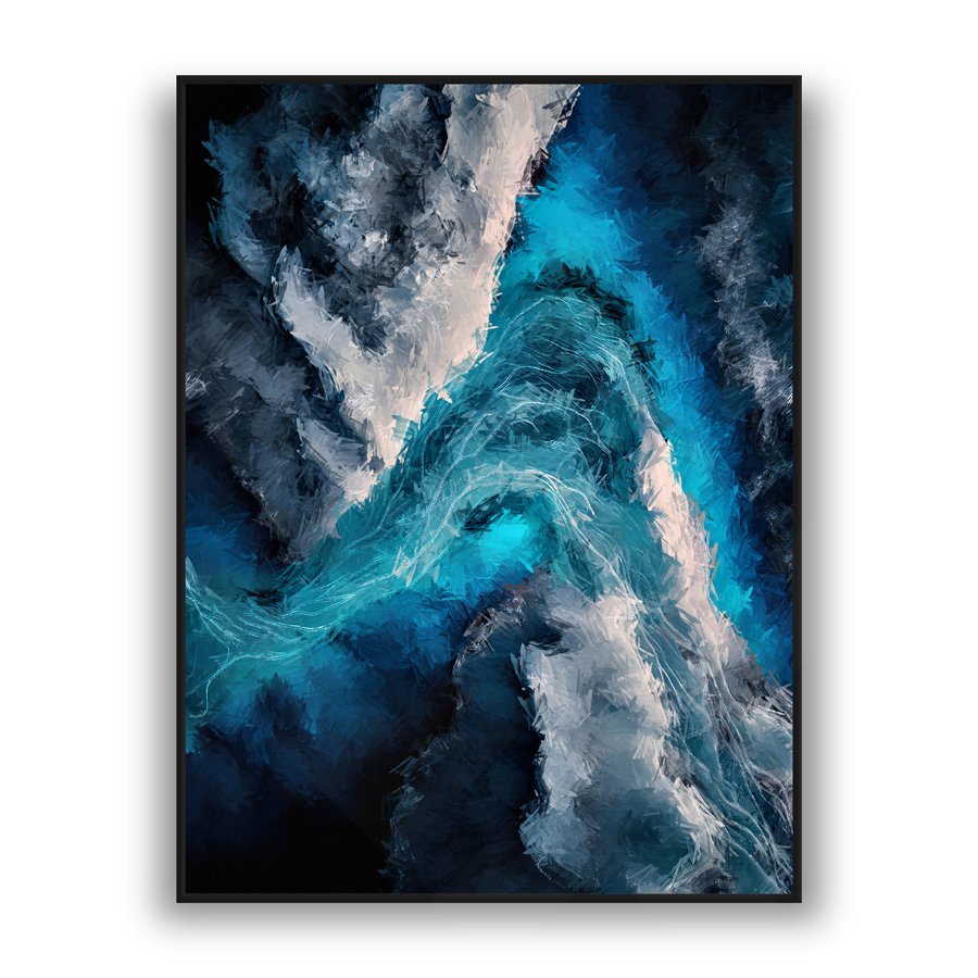 Immerse your space in movement and emotion with Azure Surge, a striking abstract artwork inspired by the raw power and fluid beauty of the ocean. This dynamic composition blends deep navy tones with vibrant turquoise and icy whites, creating the impression of waves crashing and currents swirling in dramatic harmony.