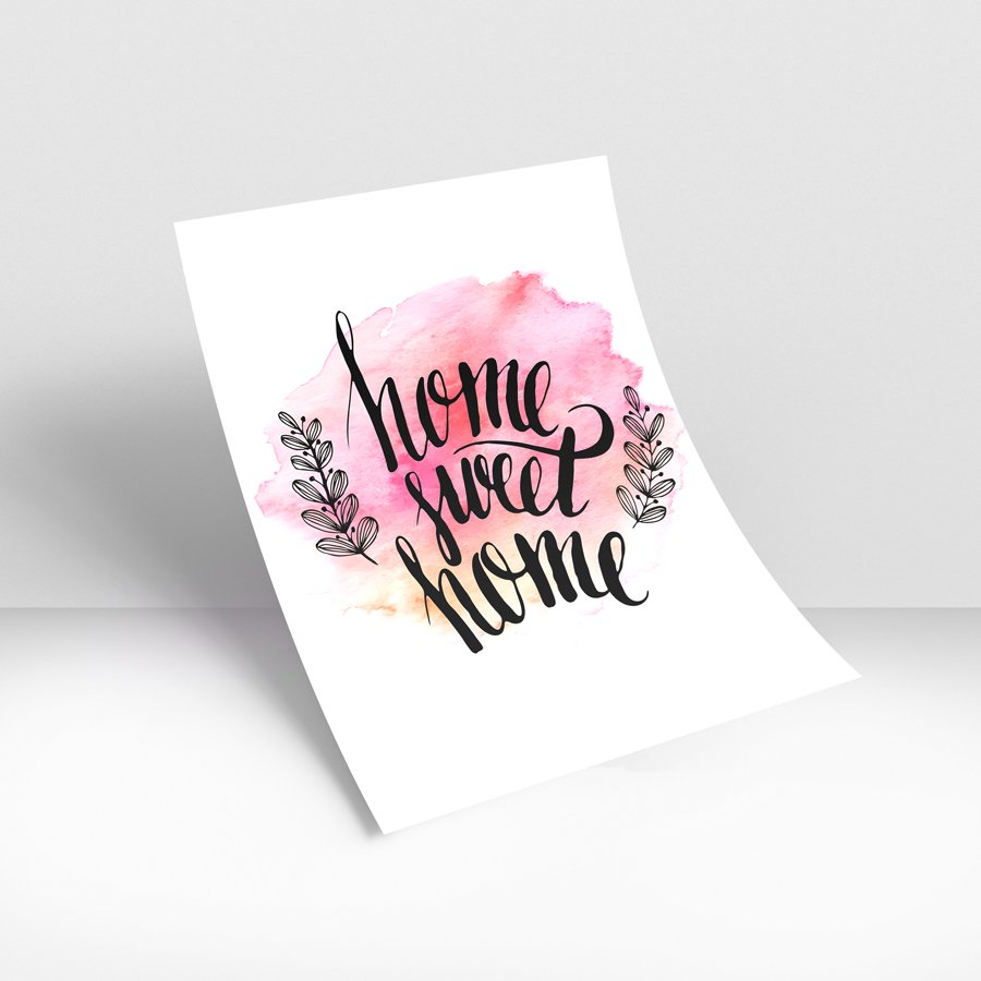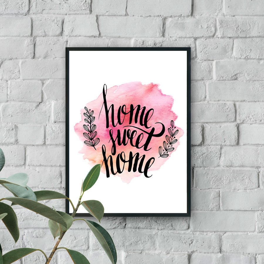 Add warmth and welcoming charm to your space with Home Sweet Home, a beautifully designed typography wall art piece that blends modern calligraphy with soft watercolor tones. The heartfelt phrase is written in bold, flowing black script, set against a gentle pink watercolor wash that creates a warm and inviting backdrop.