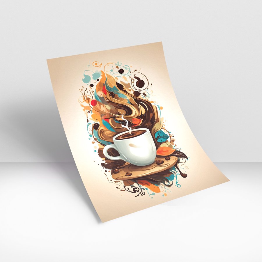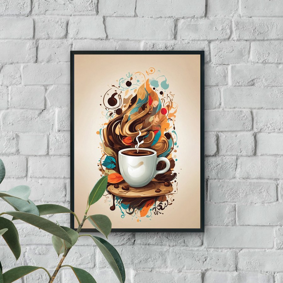 Start your day with creativity and warmth through Morning Brew, a vibrant coffee-inspired wall art piece that captures the energy of your favorite cup. This dynamic design features a steaming white coffee cup surrounded by swirling splashes of rich browns, warm caramels, and refreshing teal accents—evoking the aroma, flavor, and comfort of freshly brewed coffee.